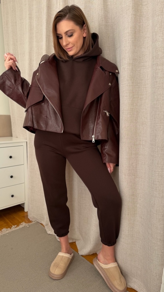 Komplet dresowy to połączenie wygody, jakości i minimalistycznego stylu. Uszyty w Polsce z miękkiej, ocieplanej dzianiny bawełnianej, zapewnia ciepło i komfort w każdej sytuacji. Bluza ma oversize'owy krój z dużym kapturem, który nadaje całości nowoczesnego, lekko streetwearowego charakteru.